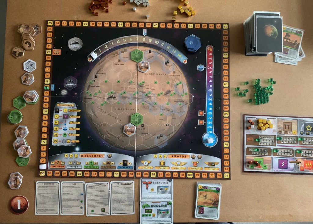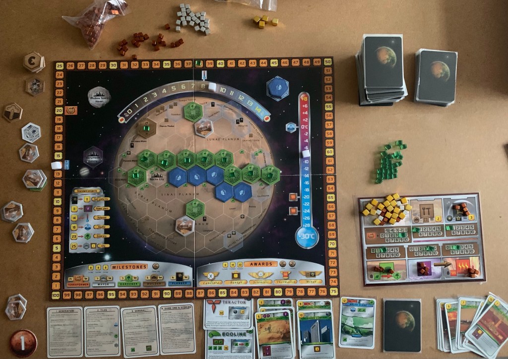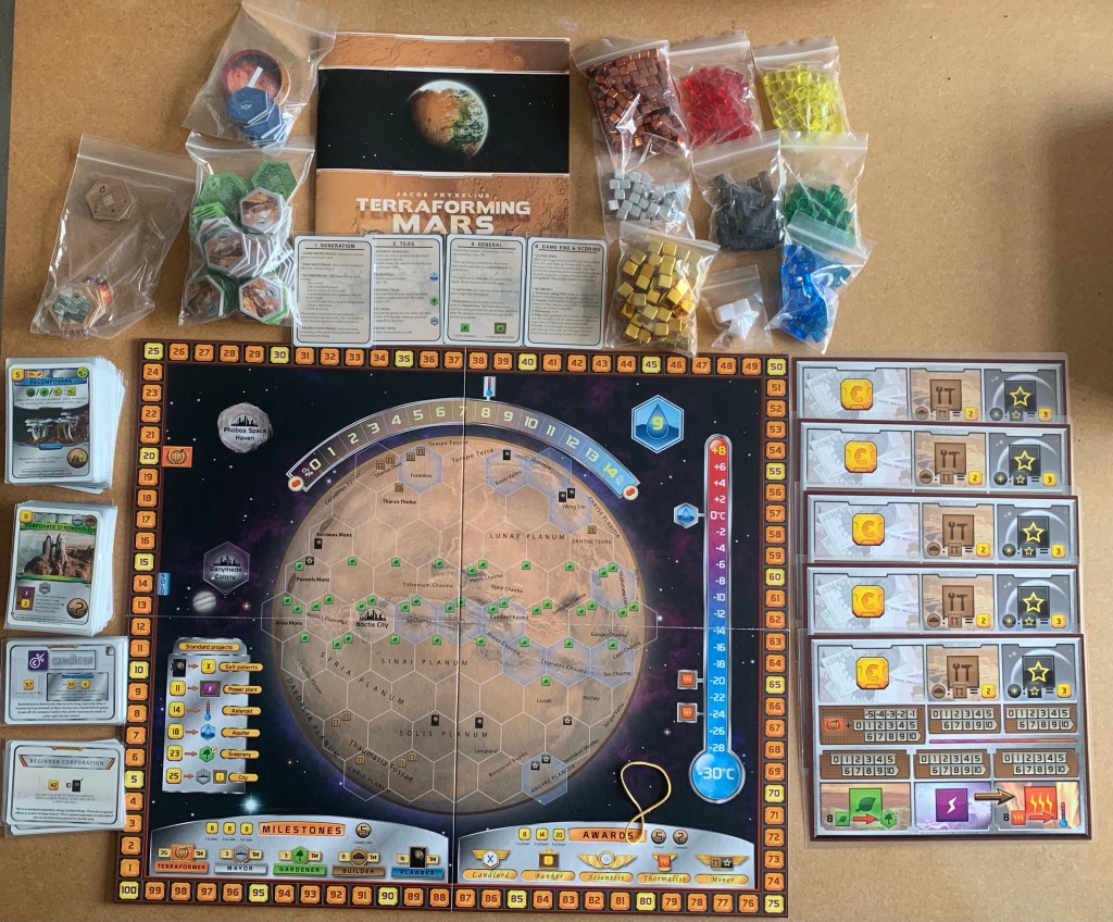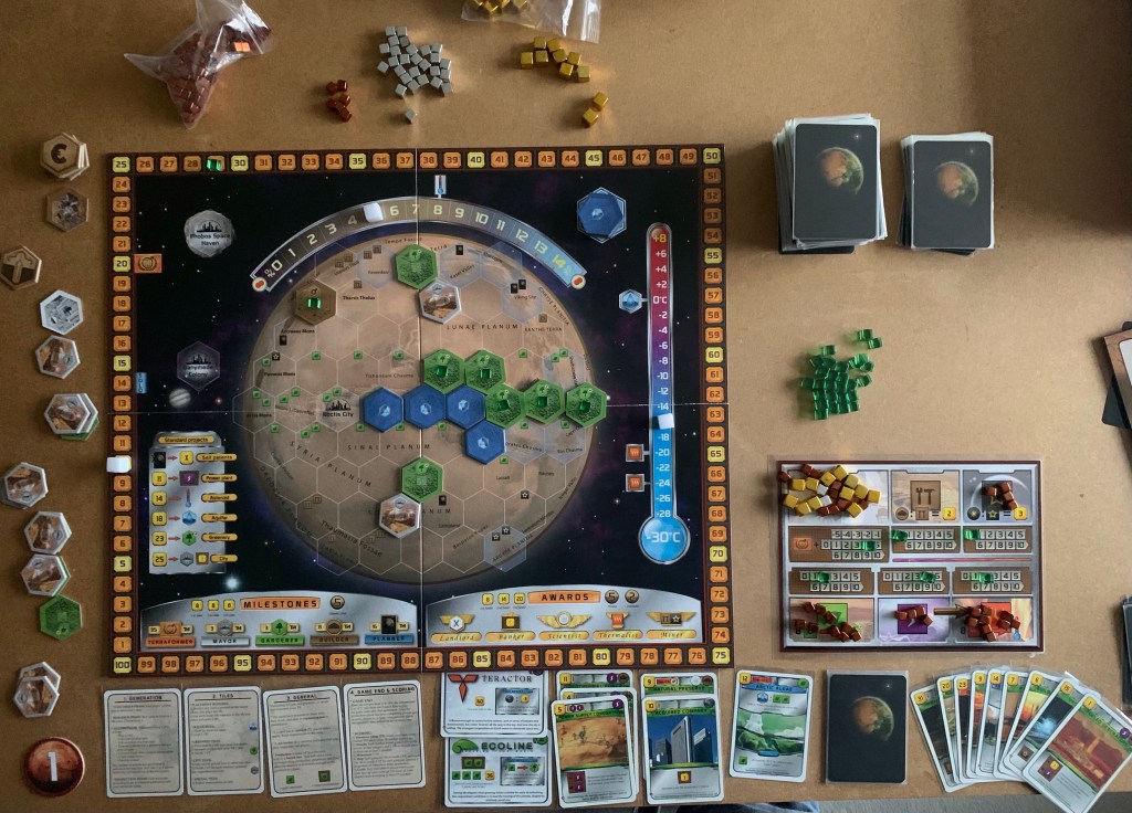 Overall, Terraforming Mars is a great strategy game, both solo and multiplayer, offering different tactics and strategies depending on your corporations and card draws. The only problem I’ve had with the multiplayer is that you can run out of coloured cubes making it hard to track resources. I would like to play it with four other people to get a real perspective on how cutthroat and competitive it can be but that will have to wait until another day…