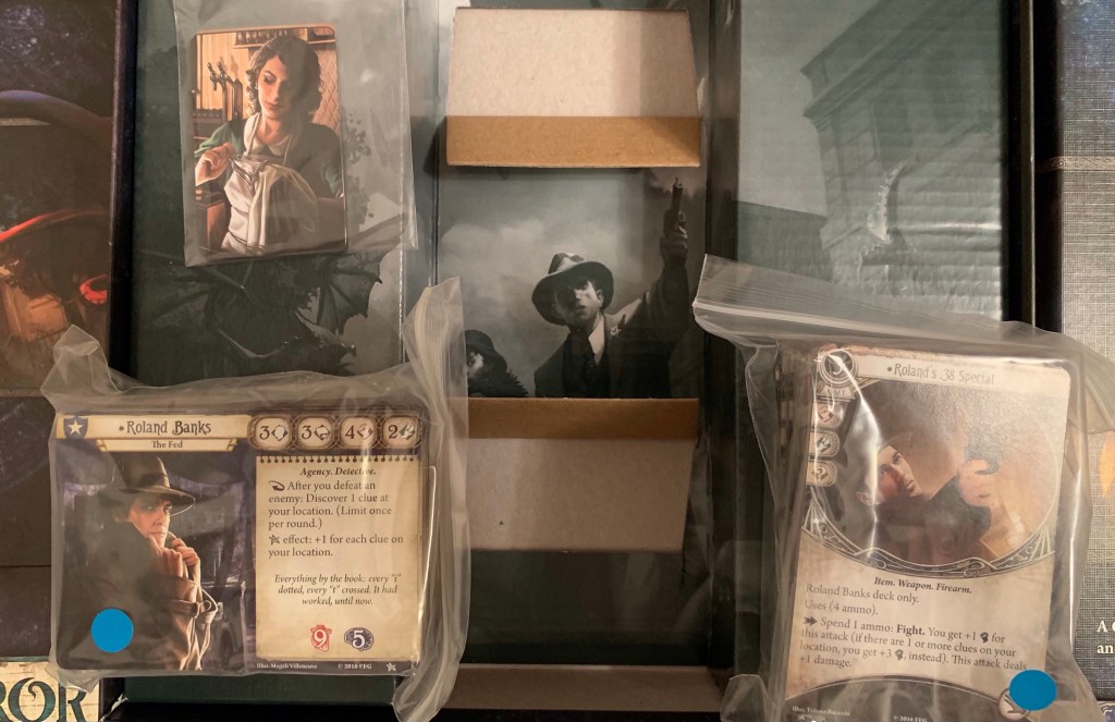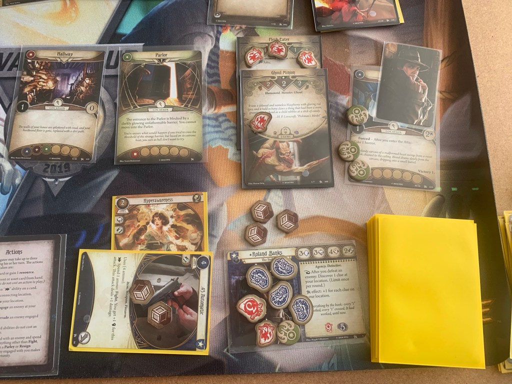 Roland didn’t fair much better after that. The agenda progressed due to having the doom counters on it and Roland had the cover up weakness come out slowing his investigations down. Eventually the enemies got the better of both investigators and they were defeated. On the second run through, I only used Roland and didn’t fair much better and got defeated again.