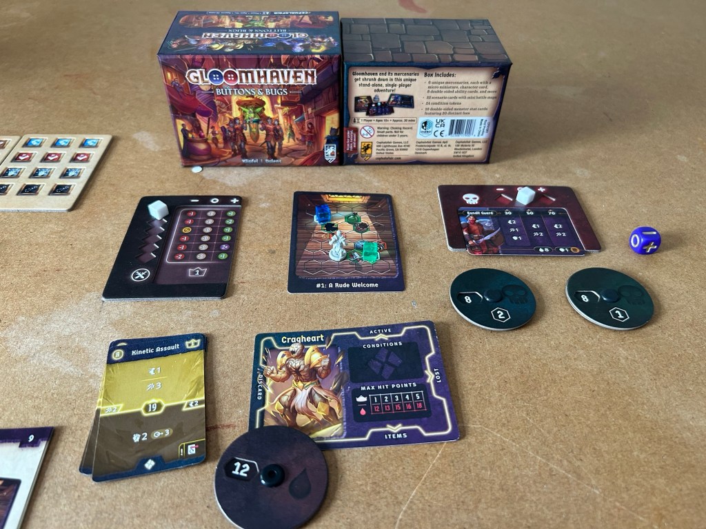 July didn’t see much gaming or hobby action for the first couple of weeks but towards the end of the month (and the start of the summer holidays) I started getting some miniatures and terrain painted. The holiday also started with Gloomhaven getting on the table but this time it was Buttons and Bugs. The tiny version of Gloomhaven played just like the original with some minor differences. It was so much quicker to set up and play meaning I got three scenarios completed in around an hour.