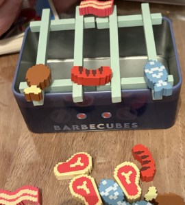 This is a bit of a different game for me, a dexterity game but I love it! All you do is use a tiny pair of tongs to put food on a barbecue without letting it drop off. I’ve introduced it to family, friends and even the children in Afterschool club and it’s been a big hit.